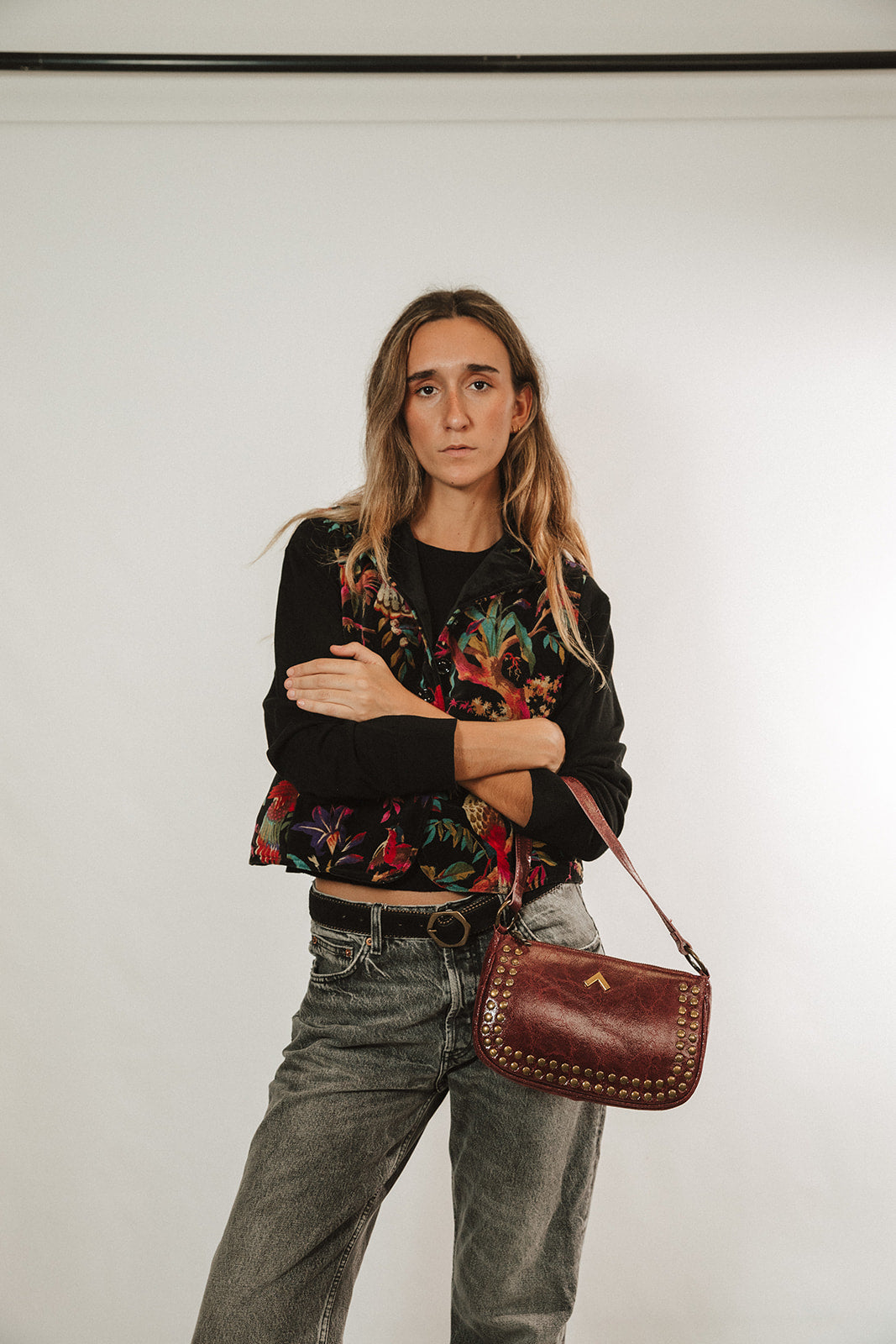Legacy es un bolso pequeño 100% piel con acabados redondos y detalles de tachuelas. Cuenta con cierre de cremallera, bolsillo, forro interior y gran capacidad para llevarlo todo contigo. Tiene asas para colgar en el hombro y una bandolera larga en el interior para llevarlo cruzado.
