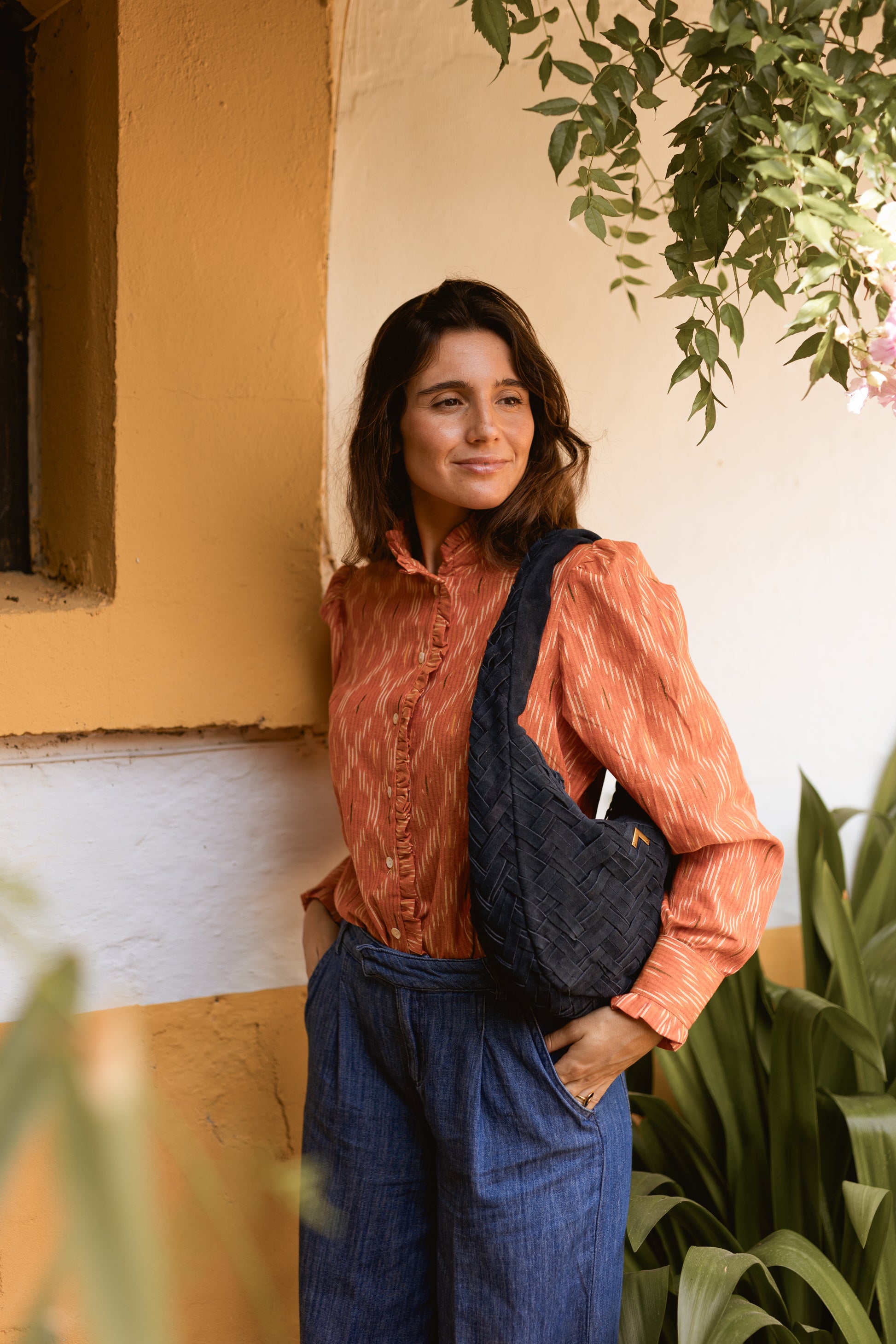 Confeccionado en 100% ante, este bolso combina suavidad, durabilidad y un diseño atemporal.
