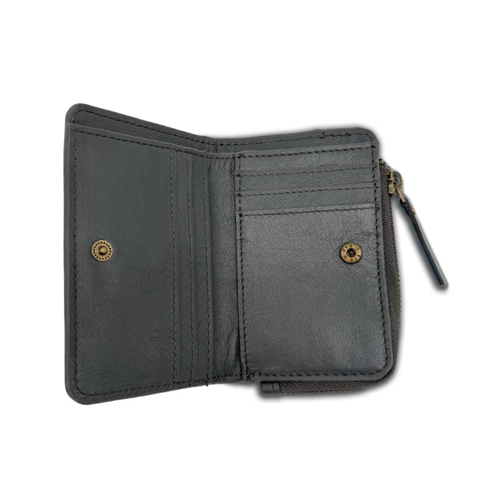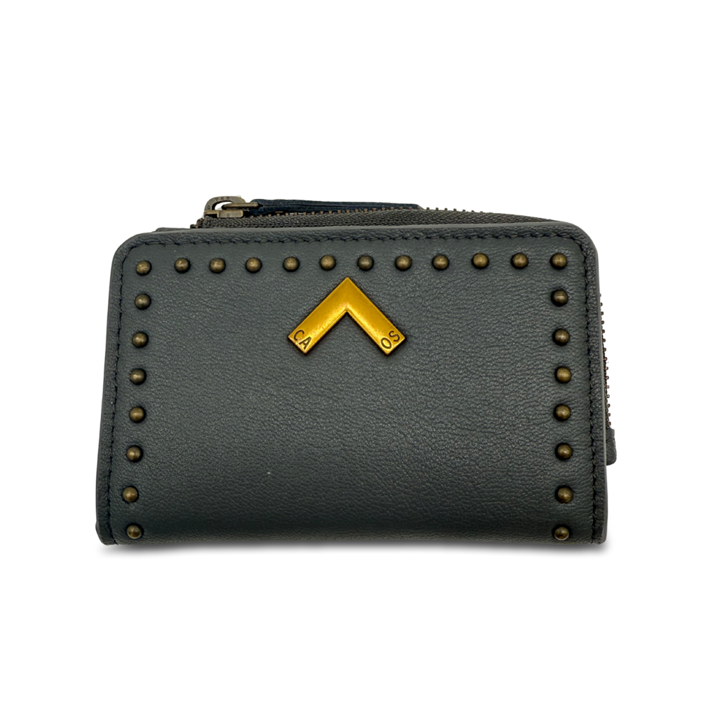 Our black leather women's wallet offers various compartments. It's the perfect size to fit in any bag. It's crafted with curved edges for exceptional comfort and functionality. The distressed gold accents add that distinctive Caos touch. It also has a zipper closure. This wallet combines style and versatility in one!