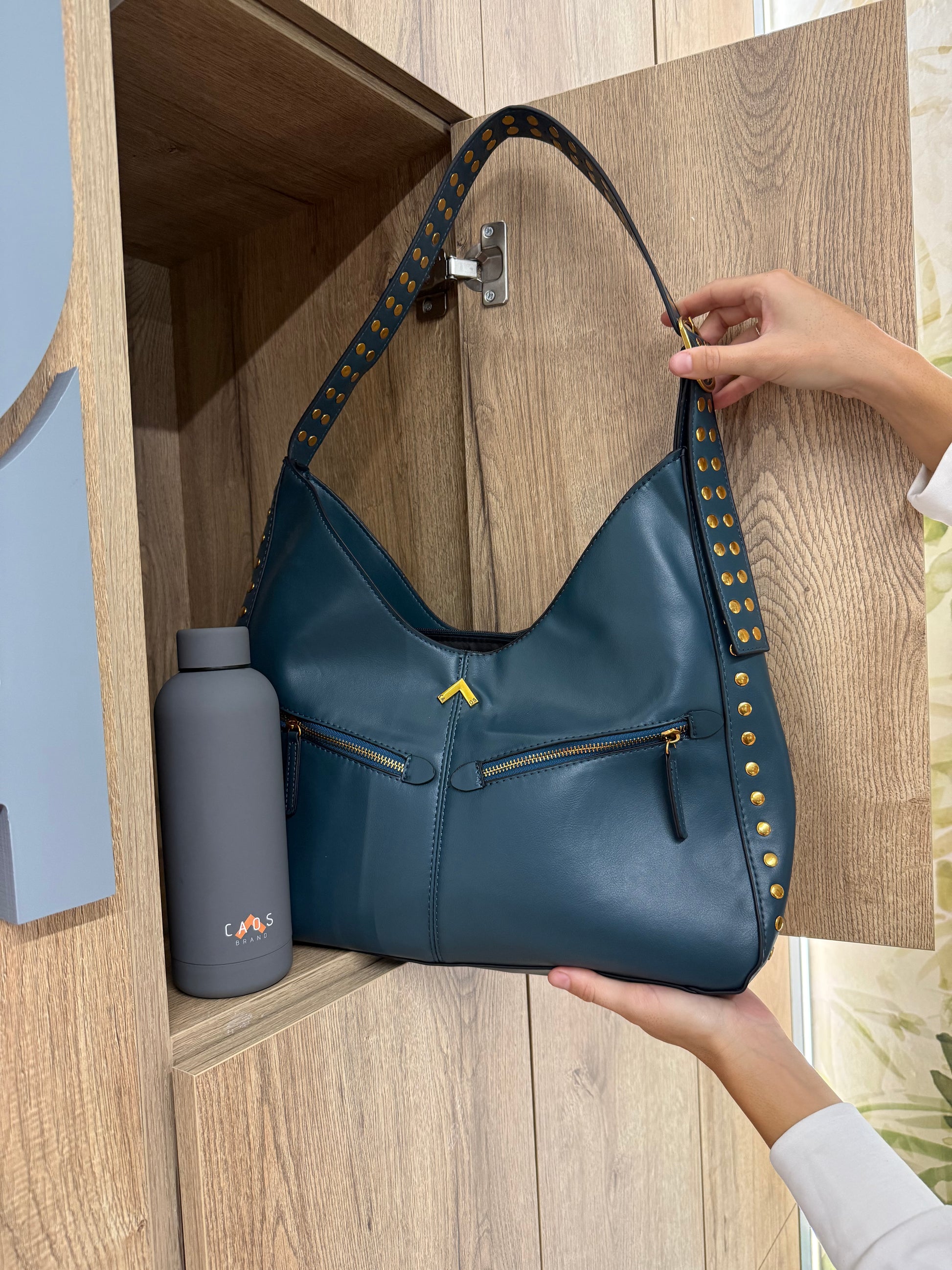 Fullerton is a leather shopper bag. It offers surprising capacity to carry everything with you with a zipper closure. It has handles to hang on the shoulder and some studded details that run along the body and handles of the bag, giving it a modern touch. You can even personalize it with your initials. It does not have an interior pocket. This bag returns to fashion as one of the best sellers in past seasons, combining style and versatility in one!