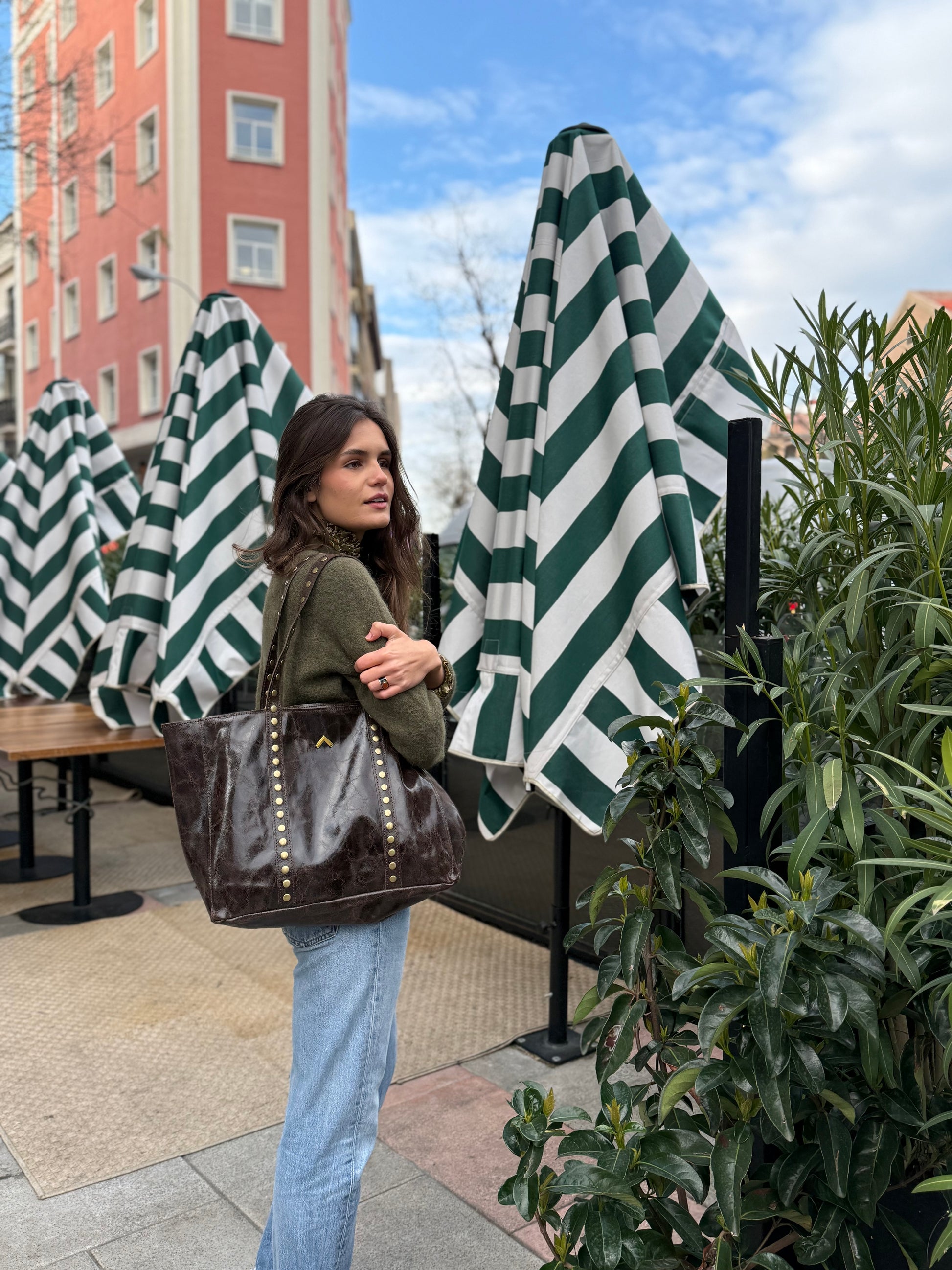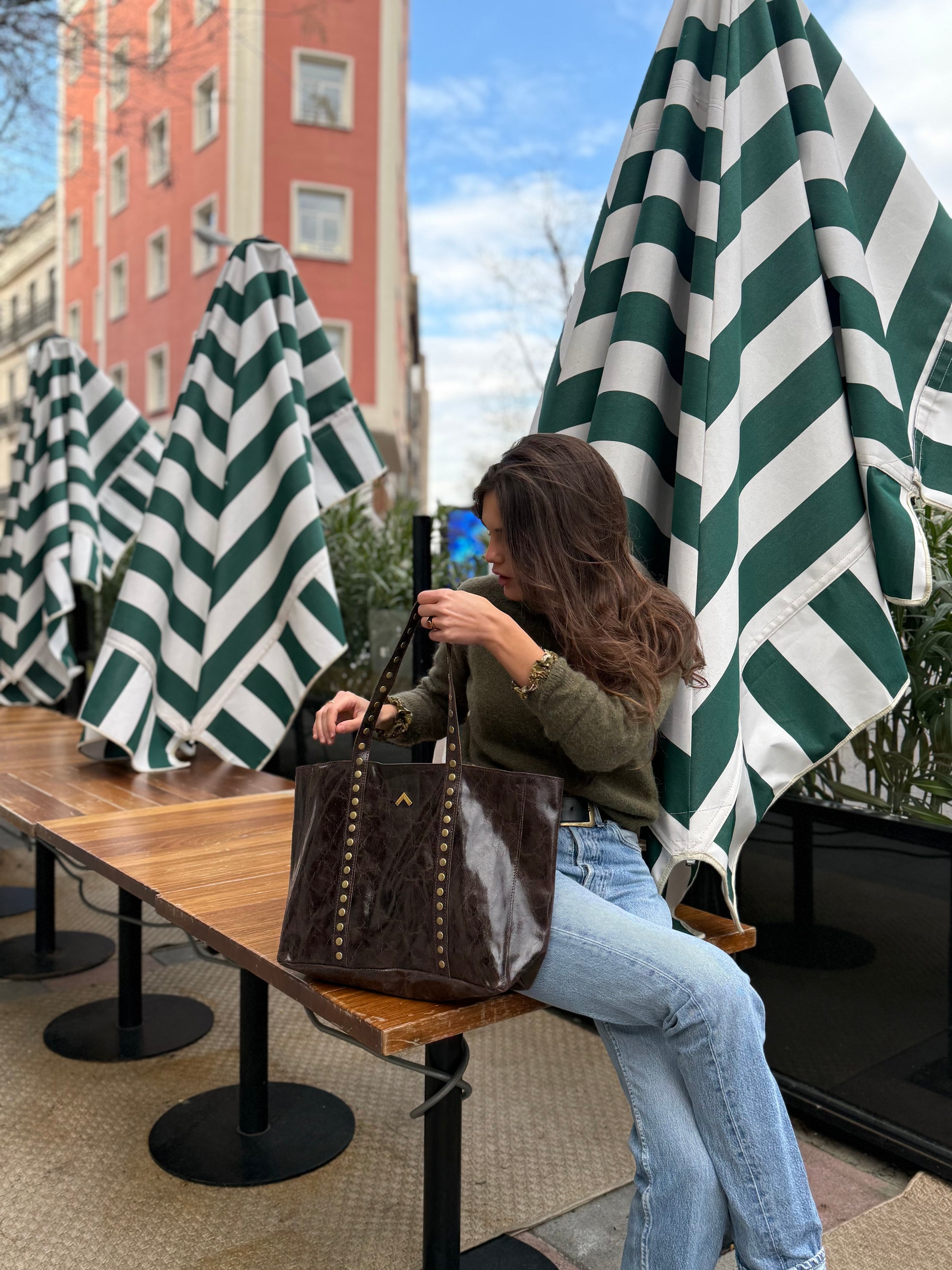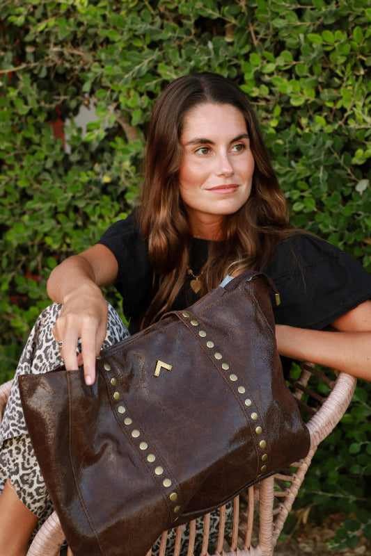 Fullerton est un sac cabas en cuir. Il offre une capacité surprenante de tout emporter avec soi grâce à une fermeture zippée. Il est doté de poignées pour l'accrocher à l'épaule et de détails cloutés qui longent le corps et les poignées du sac, lui donnant une touche moderne. Il n'a pas de poche intérieure. Ce sac revient à la mode comme l'un des best-sellers des saisons passées, alliant style et polyvalence en un seul !
