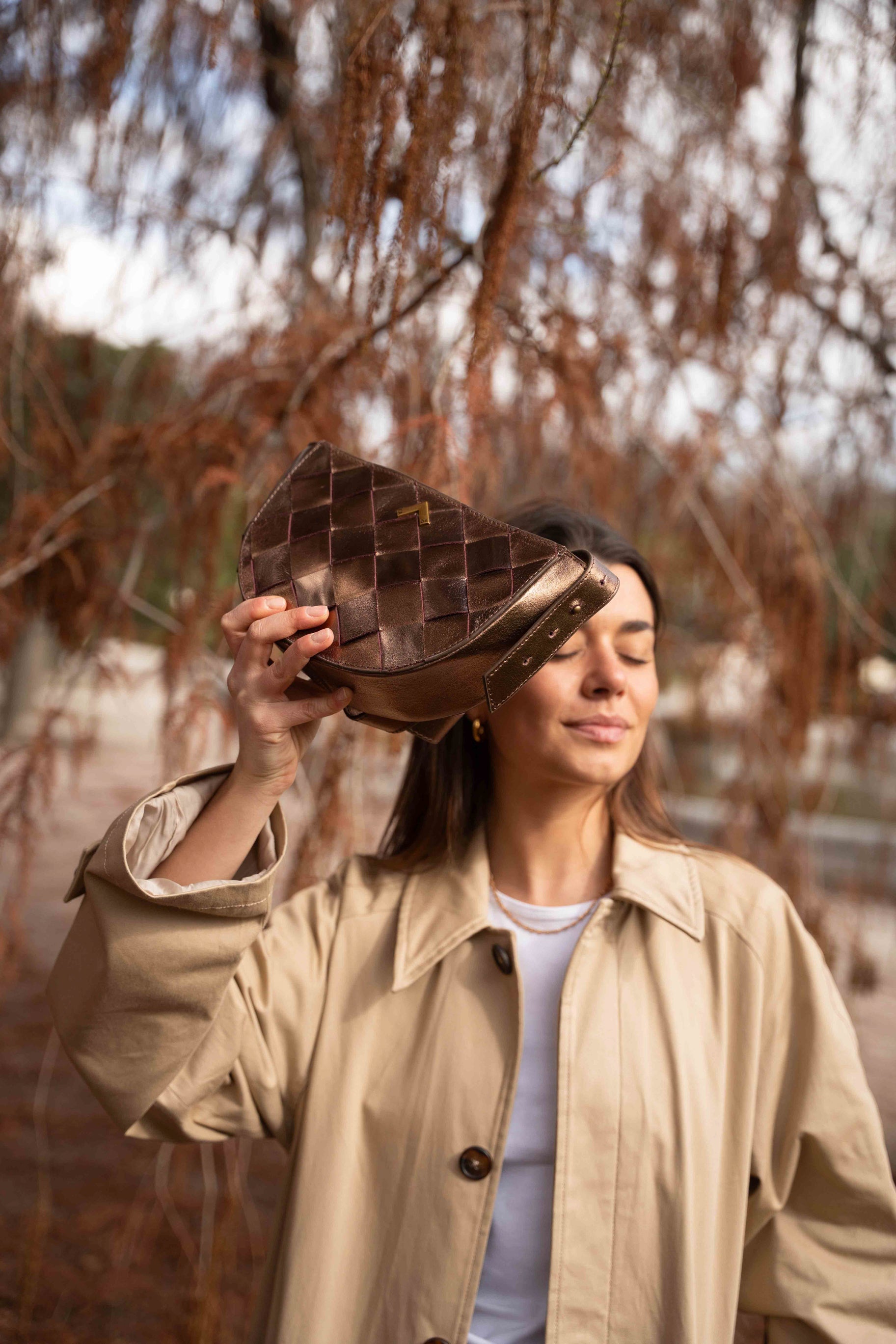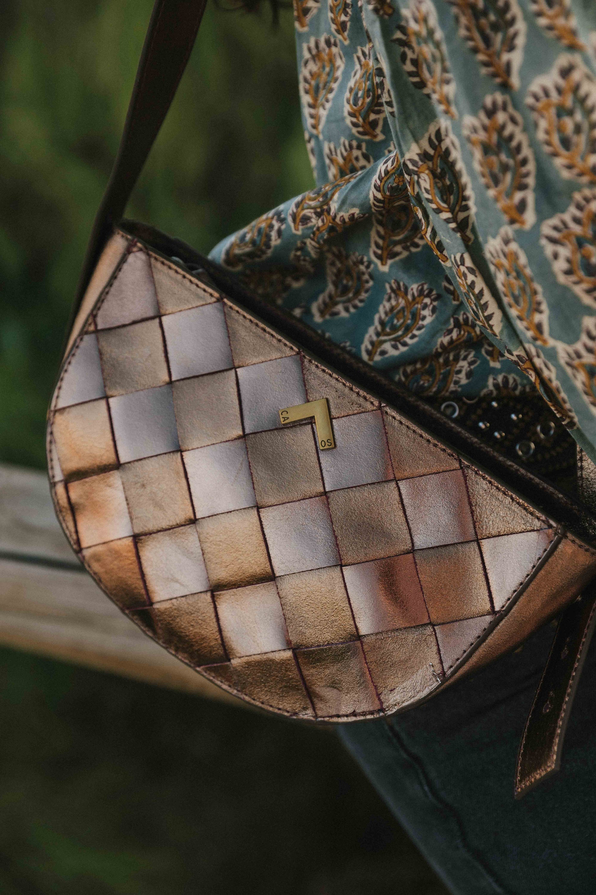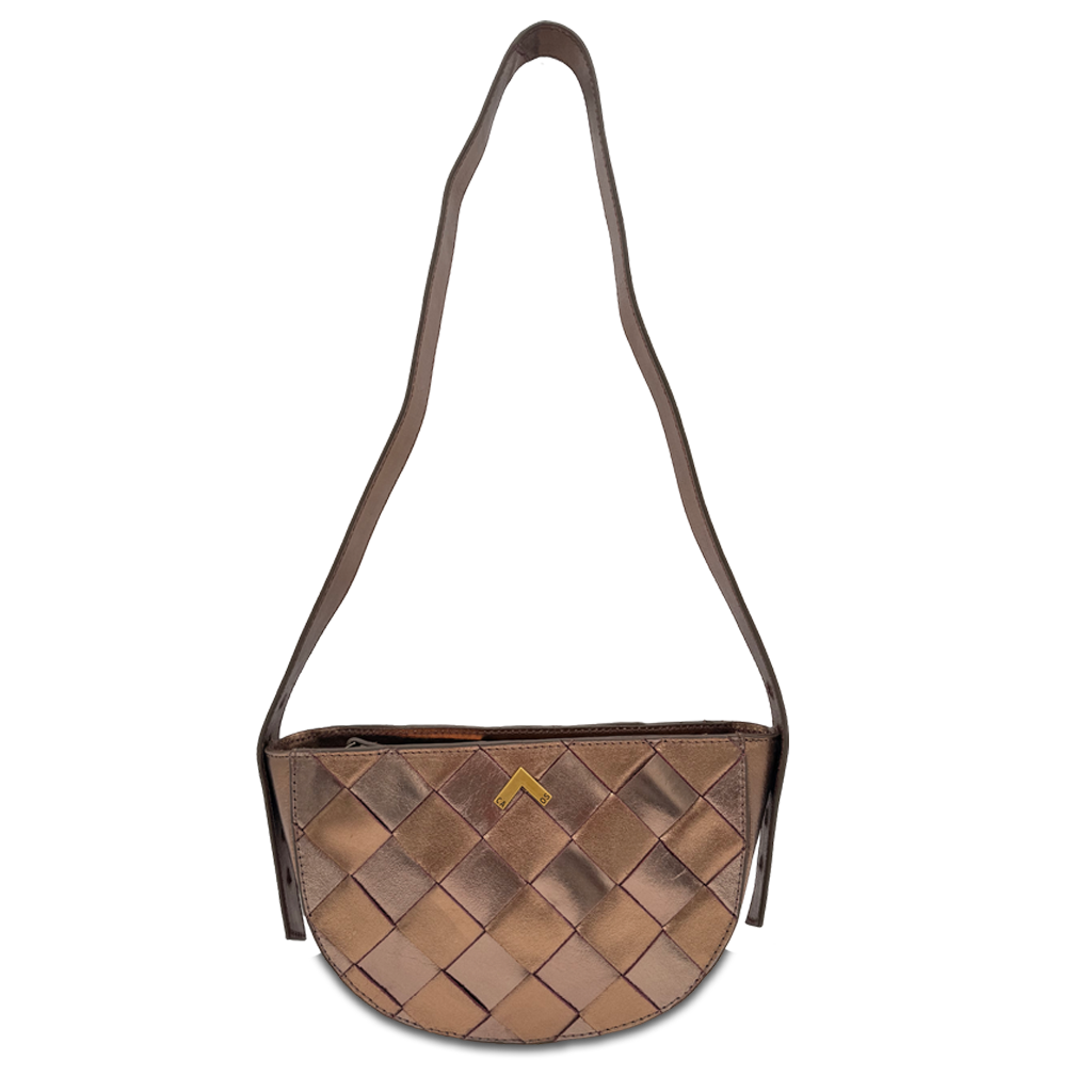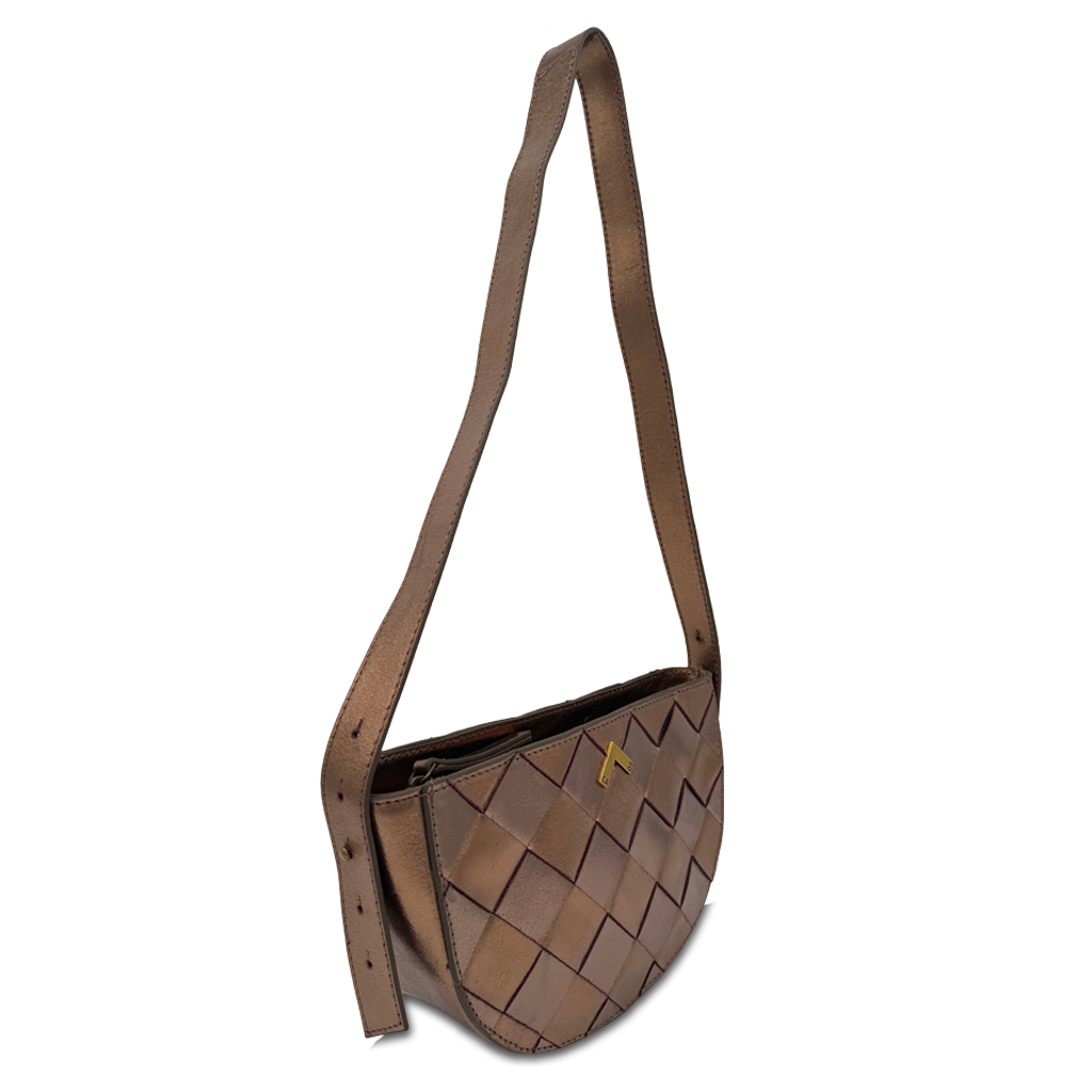 Ce petit sac en cuir tressé métallisé allie parfaitement style et fonctionnalité. Malgré sa taille, il offre une grande capacité , vous permettant de transporter confortablement tous vos essentiels. Son intérieur est doté d'une doublure et d'une poche pour garder vos affaires organisées.